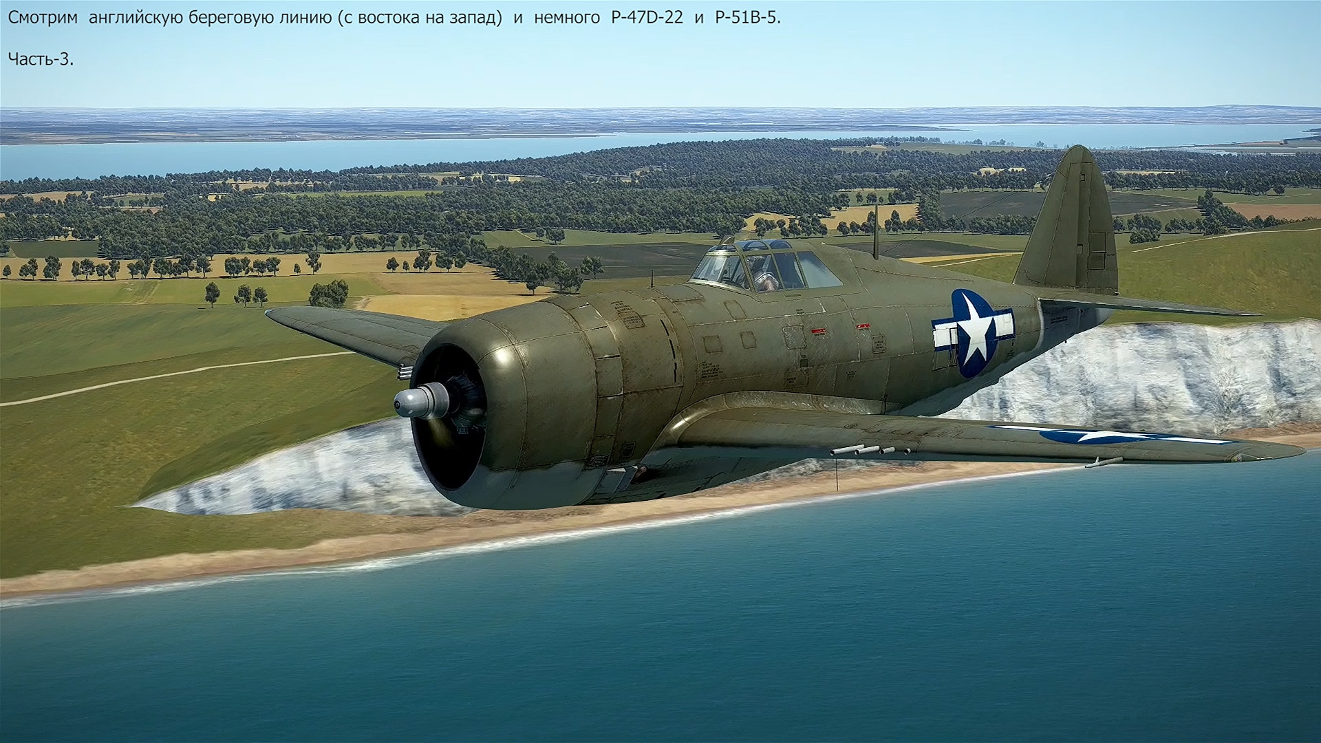 Смотрим английскую береговую линию (с востока на запад) и немного P-47D22 и P-51B-5. Симулятор "IL-2 Sturmovik Great Battles". Битва за Нормандию.