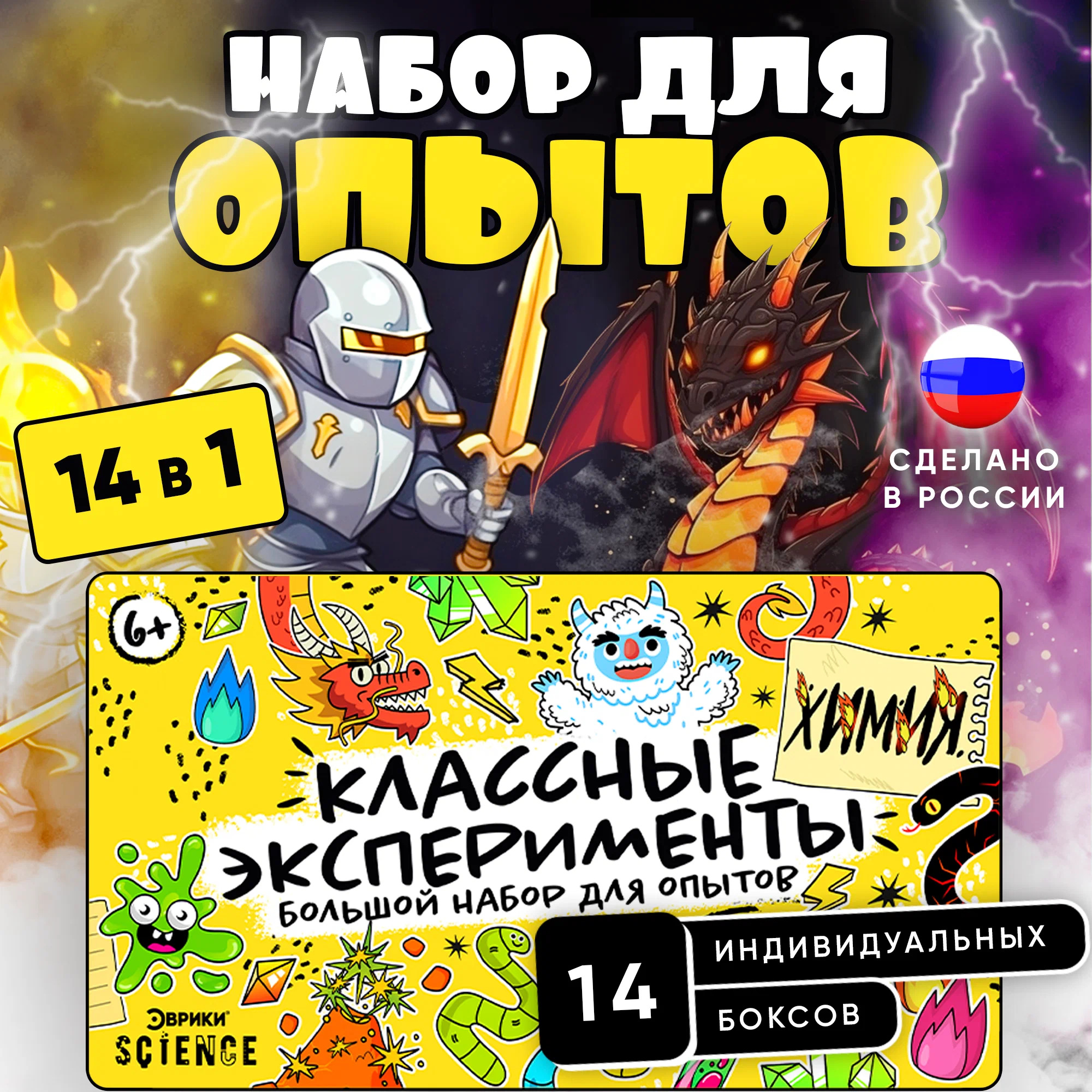 Набор для опытов и экспериментов 14 в 1, опыты для детей, набор для творчества