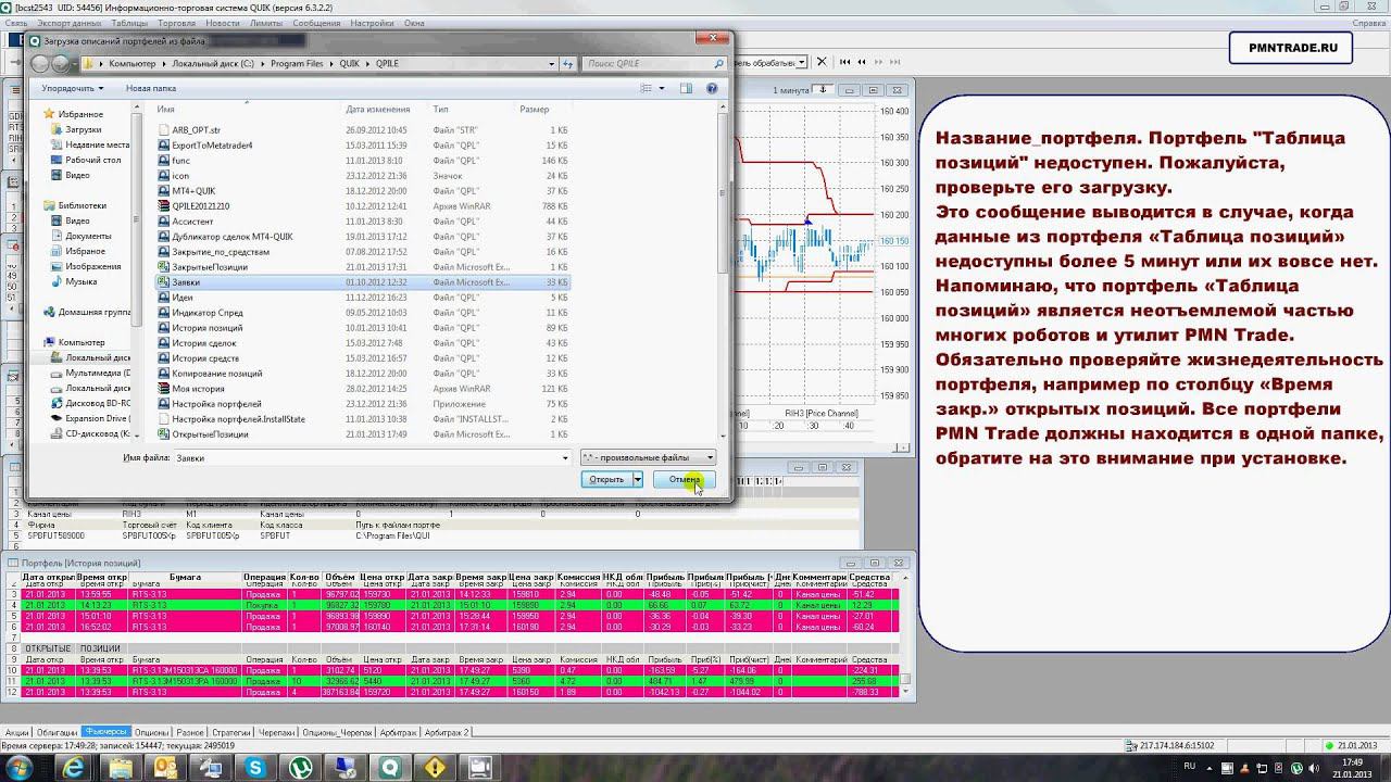 Для облегчения использования, все портфели (утилиты, роботы) выводят сообщения о работе в «Окно сообщений» системы QUIK.