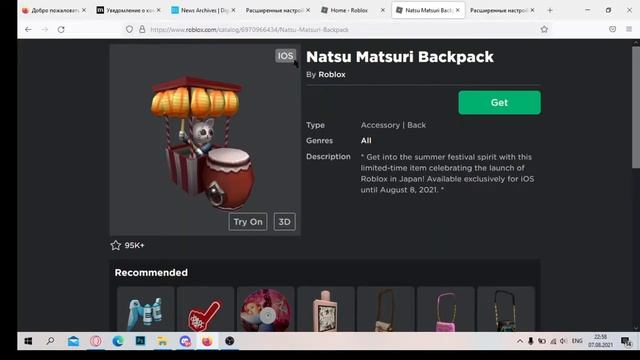 скачать firefox -- https://www.mozilla.org/ru/firefox/new/ ссылки на все предметы рюкзак до 8 августа -- https://www.roblox.com/catalog/6970966434/Natsu-Matsuri-Backpack крылья до 18 августа -- https://www.roblox.com/catalog/5940844989/Mech-Wings коды: about:config general.useragent.override Mozilla/5.0 (Macintosh; Intel Mac OS X 10_15_4) AppleWebKit/605.1.15 (KHTML, like Gecko) Mobile/9B176 ROBLOX iOS App 2.445.410643 Hybrid RobloxApp/2.445.410643 (GlobalDist; AppleAppStore) мой Vk -- https://vk.com/public200279080 мой дискорд сервер -- https://discord.gg/Wqr8fH23