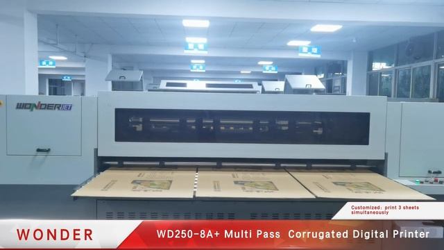WD250-8A+ as WONDER entry-level classic scanning digital printing machine, Using Epson I3200-A1 inkjet printhead, the basic accuracy is 600dpi, and the maximum printing width is 2500mm. Printing speed can up to 700㎡/h, suitable for virous kinds of corrugated cardboard such as yellow and white cattle cardboard, honeycomb board, etc. This machine is ustomized to print 3 sheets simultaneously . www.wonderjet.net contact : Max Tian, max@wonderjet.net, +86 13530134447