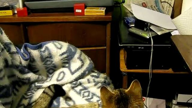 kitty watches the light moving across the glass. 1-09-10
