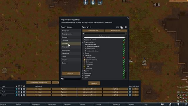 Как поменять диету по УМОЛЧАНИЮ в игре Rimworld