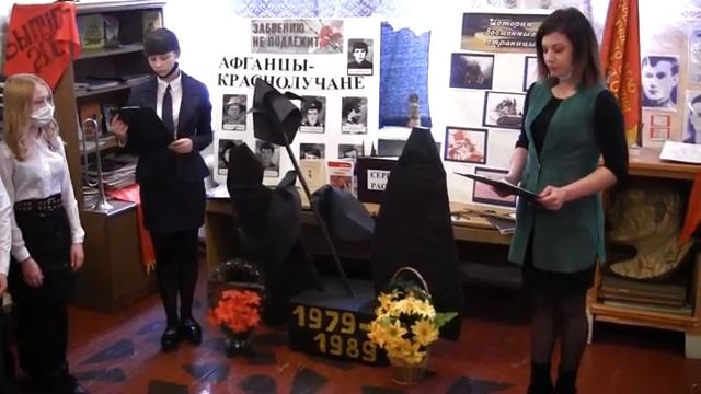В канун 32-ой годовщины вывода Советских войск из Афганистана, экскурсоводы музея Петровской школы № 36 под руководством учителя истории Костюченко Виктории Сергеевны провели для семиклассников урок-экскурсию «Живых и павших помним». О наших земляках воинах-интернационалистах, которые принимали участие в боевых действиях, рассказала ученица 8 класса Тыхенко Дарья. Афганистан – это боль и скорбь, и наши воины были в этой войне просто солдатами