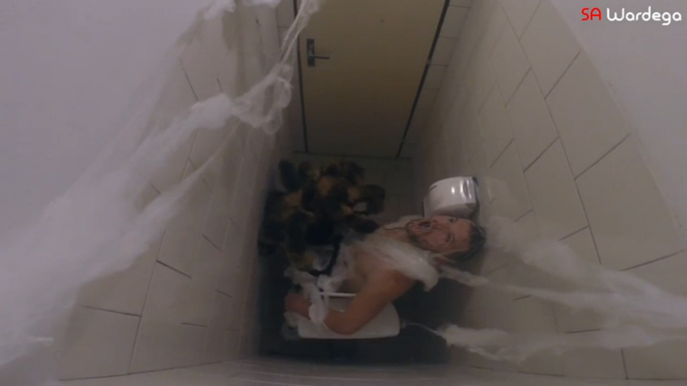 Собачку одели в костюм паука и пустили пугать народ. Продолжение старенького розыгрыша к Хэллоуину от SA Wardega.