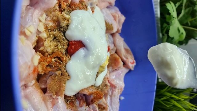СОЧНЫЙ ШАШЛЫК ИЗ КРЫДЫШЕК НА МАНГАЛЕ Ингредиенты: Куриные крылья 2кг Чеснок 2 зубчика Черный перец 1 ч.л. Кориандр 1 ч.л. Паприка 1 ч.л. Прованские травы 1 ч.л. Горчица 2 ч.л. Томатная паста 2 ч.л. Кефир 4 ст.л. Соль. Масло растительное 4 ч.л. Ingredients: 2kg chicken wings Garlic 2 pcs Black pepper 1 tsp Coriander 1 tsp Paprika 1 tsp Herbs of Provence 1 tsp Mustard 2 tsp Tomato paste 2 tsp Kefir 4 tbsp Salt. Vegetable oil 4 tsp