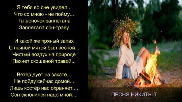 Ветер дует на закате... Наклонил он сон-траву... Как в стогу мы ночевали... Я любил тебя одну... И любовь моя земная В эту тёплую весну Приходила вечерами Длинную неся косу... Я тебя во сне увидел... Что со мною - не пойму... Ты веночек заплетала Заплетала сон-траву И какой же пряный запах С пьяной мятой был весной... Чистый воздух на природе Пахнет скошеной травой... Ветер дует на закате... Не пойду сейчас домой... Лишь костёр нас охраняет.... Сон склонился надо мной.... Никита Т (2015 год)