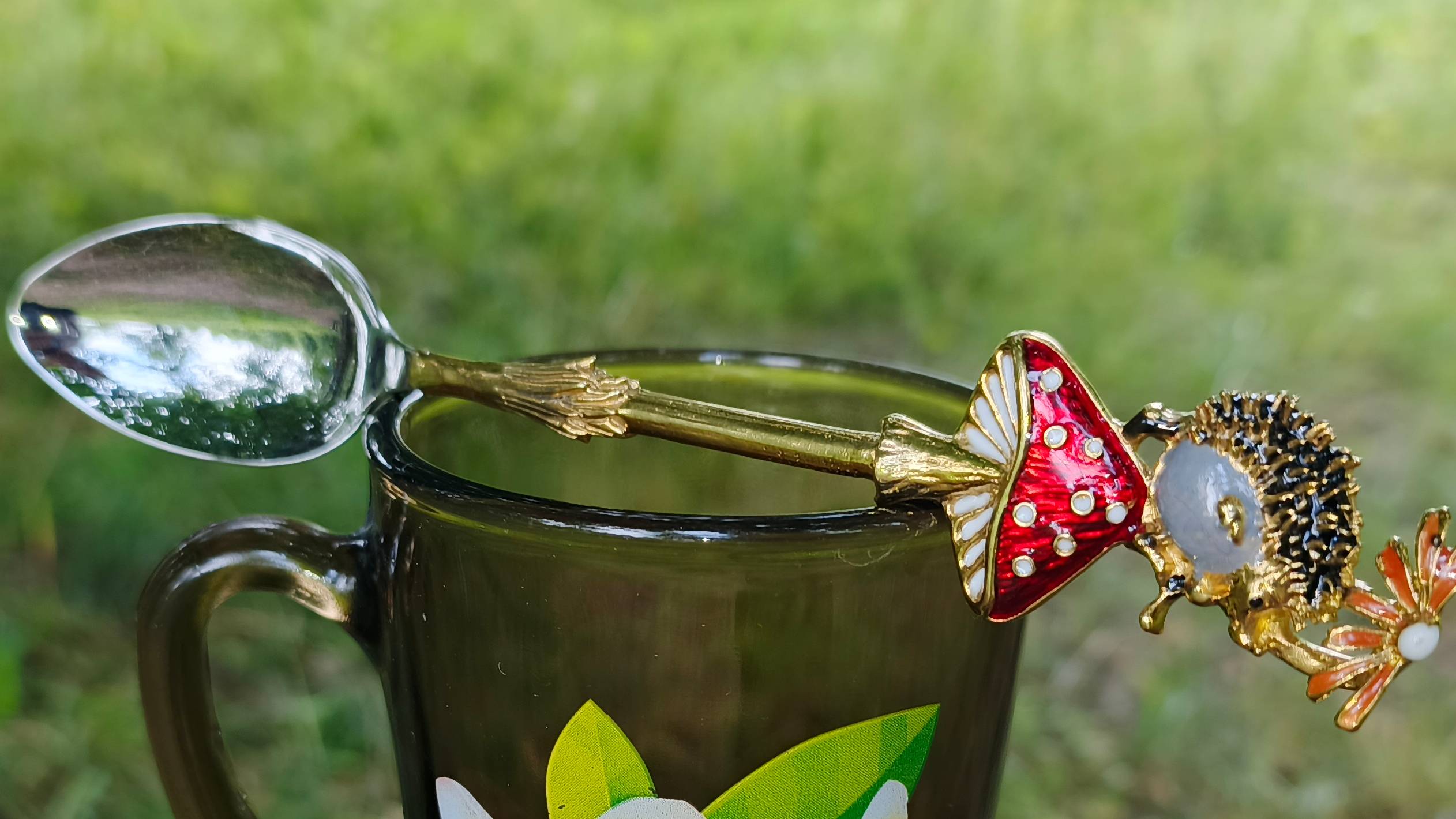 Чайная ложка «Ежик в тумане» со вставкой из латуни с эмалью
