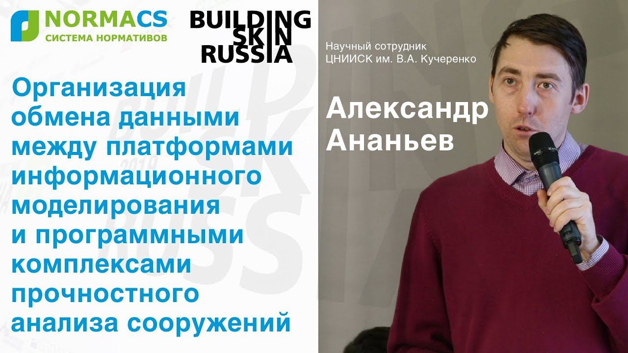 Александр Ананьев, ЦНИИСК им. В.А. Кучеренко. Доклад на Building Skin Russia 2019: "Организация обмена данными между программными платформами информационного моделирования". www.normacs.info