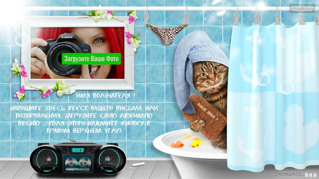 ЗАПОЛНИТЬ ОТКРЫТКУ СЕЙЧАС: https://1romantic.com/ Дорогие друзья! Вам остаётся только, написать нужный вам текст и загрузить свою фотографию. 1Romantic.com Является первым и единственным в мире сервисом интерактивных видео поздравлений. Мы используем собственную уникальную технологию, добавляя ежедневно самые новые и последние разработки программирования. У нас Вы можете найти поздравления на любой вкус, только высокого качества и разрешения. Согласитесь, всегда приятней, отправить поздравления от себя лично, чем пересылать чужие, с уже заготовленным стандартным и быстро мерцающим текстом, как рекламный баннер, пересылаемый друг-другу от тысячи к тысячам где нет Ваших Имён. Задумайтесь ! Это выглядит слишком наивно и как минимум глупо, особенно для людей которые умеют писать и читать (на мою розочку сверкалку или стикер и отвали). Теперь всё будет иначе ! Вы можете сами передать своё настроение, тем людям, которым Вы будете адресовать своё поздравление. Теперь Вы сами, творец, художник и поэт своих чувств, наполняя видео открытку своими словами, излучая только самое доброе, искреннее из своих тёплых сердец. Загрузить свою любимую фотографию или фотографию получателя, что безусловно, будет гораздо приятней и неожиданней для него) Безусловно, мы подумали и о музыкальном оформление. Наверняка, Вы будете подбирать нужные слова и фотографию под ту песню, которую Вы захотите загрузить сами, а не ту которую Вам навязывают. Ну и самое главное, Вы можете использовать функцию добавления своего голоса, программа сама наложит Ваш голос на начало загруженной песни. Поверьте это очень оригинально, особенно если Ваш друг не слышал Вас долгие годы. Такое поздравление можно сделать действительно за 30-60 сек. Но если Вы творческий человек, оно не отпустит Вас так быстро))) И Вы будете думать, сочинять, плакать, улыбаться, восхищаться, раскрыв в себе новые таланты... возможно это станет Вашим первым собственноручным творением . Удачи Вам ! С уважением, Ваши Романтики ! Краткий список предлагаемых нами поздравлений... Поздравления с днем рождения женщине. Поздравления с днем рождения мужчине. Поздравления с днем рождения другу. Поздравления с днем рождения подруге. Поздравления с днем рождения для детей. Поздравления с днем святого Валентина. Поздравления Папе. Поздравления с днем рождения Маме. Прикольные поздравления. Видео поздравления с днем рождения. Музыкальные поздравления с днем рождения. Слайд-шоу с днем рождения. и многое-многое другое.