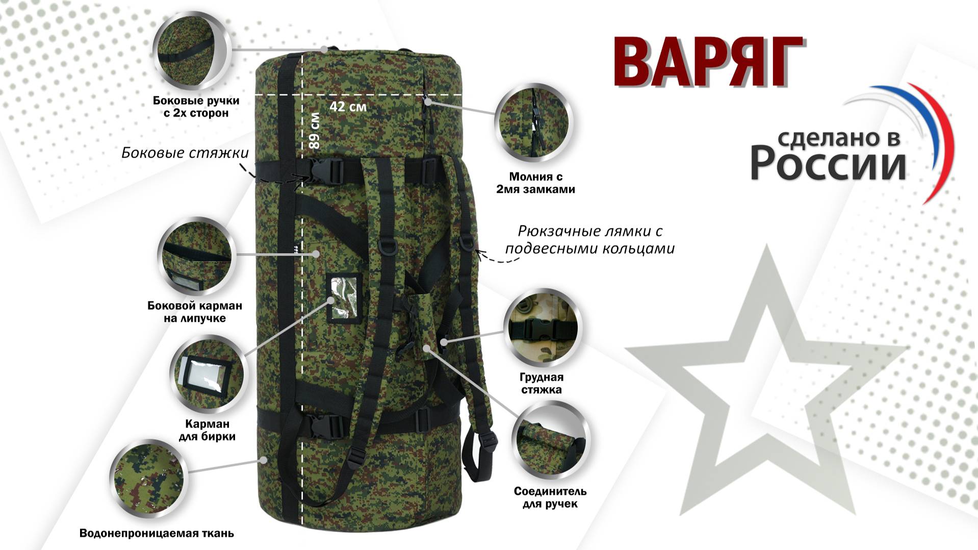 Заказать баул армейский "Варяг, цвет - ЕМР (цифра) с черными стропами, 100 или 120 литров, а также другие аксессуары можно на официальном сайте компании А&Р Групп: https://ap-group-llc.ru/ Возможность изготовления товаров по индивидуальным размерам и проектам. Гарантия на продукцию 1 год. Доставка осуществляется по всей России, а также в Казахстан и Беларусь. _______________________________________________________________________ Мы ВКонтакте: https://vk.com/apgroup Мы на Wildberries: https://www.wildberries.ru/seller/198927 Мы на Ozon: https://www.ozon.ru/brand/a-p-87358243/ Мы на Я.Маркете: https://market.yandex.ru/business--a-r-grupp-rossiiskii-proizvoditel-aksessuarov/864809