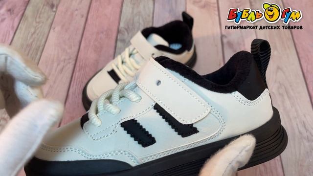 336399 Кроссовки Pasito утепленные на шнуровке и липучке с черными вставками белые
