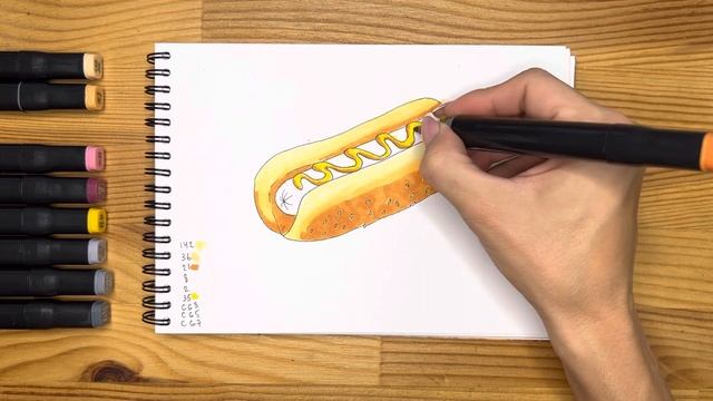 Как нарисовать хот-дог карандашом и скетч маркерами | Рисунок для детей, поэтапно и легко