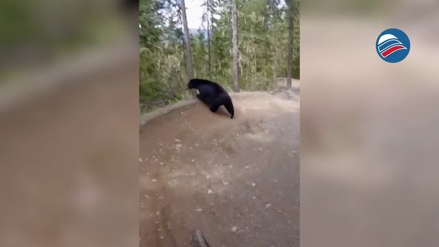 Неожиданная встреча: медведь шокировал велосипедиста в лесу