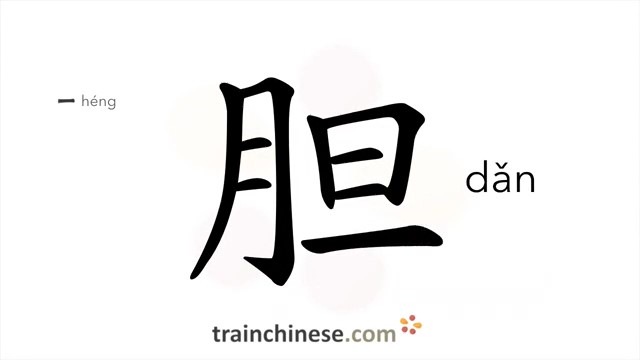 胆 (dǎn) guts, courage; bravery, gallbladder