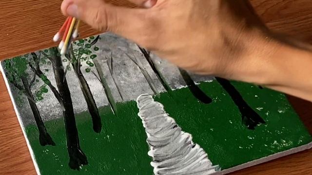 Green Forest Painting in the Heavy Rain | Simple Painting Techniques