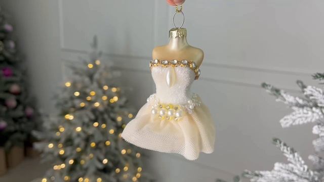 Ёлочная игрушка БАЛЕТНАЯ ПАЧКА - ЮВЕЛИРНЫЙ МОТИВ, текстиль, кремовая, 10 см, T3499-2