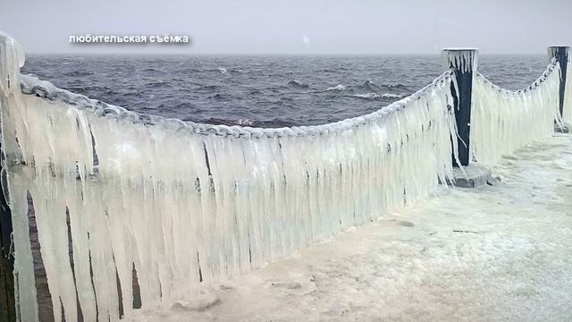 Ледяной занавес на набережной в Калязине