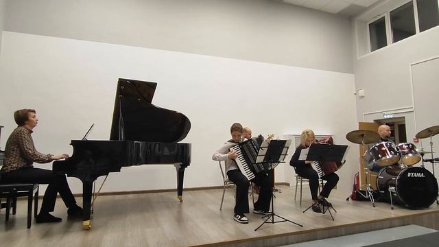 Исполняет инструментальный ансамбль в составе: Руссу Елена Юрьевна, Леонтьева Арина (аккордеон); Птицын Игорь Евгеньевич (бас-гитара); Тумаков Иван Валерьевич (ударные инструменты); Бушуева Наталья Владимировна (фортепиано) Руководитель Руссу Елена Юрьевна