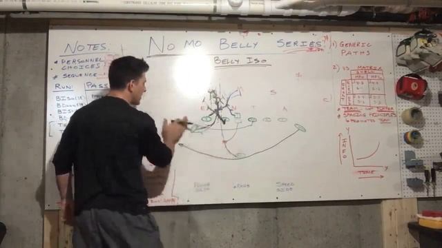 No Mo Belly Series: Belly Iso vs 4-3. Correction—HB’s are facing LOS with outside foot up!! About 45 degrees to LOS. #youthfootball #highschoolfootball #wingtfootball