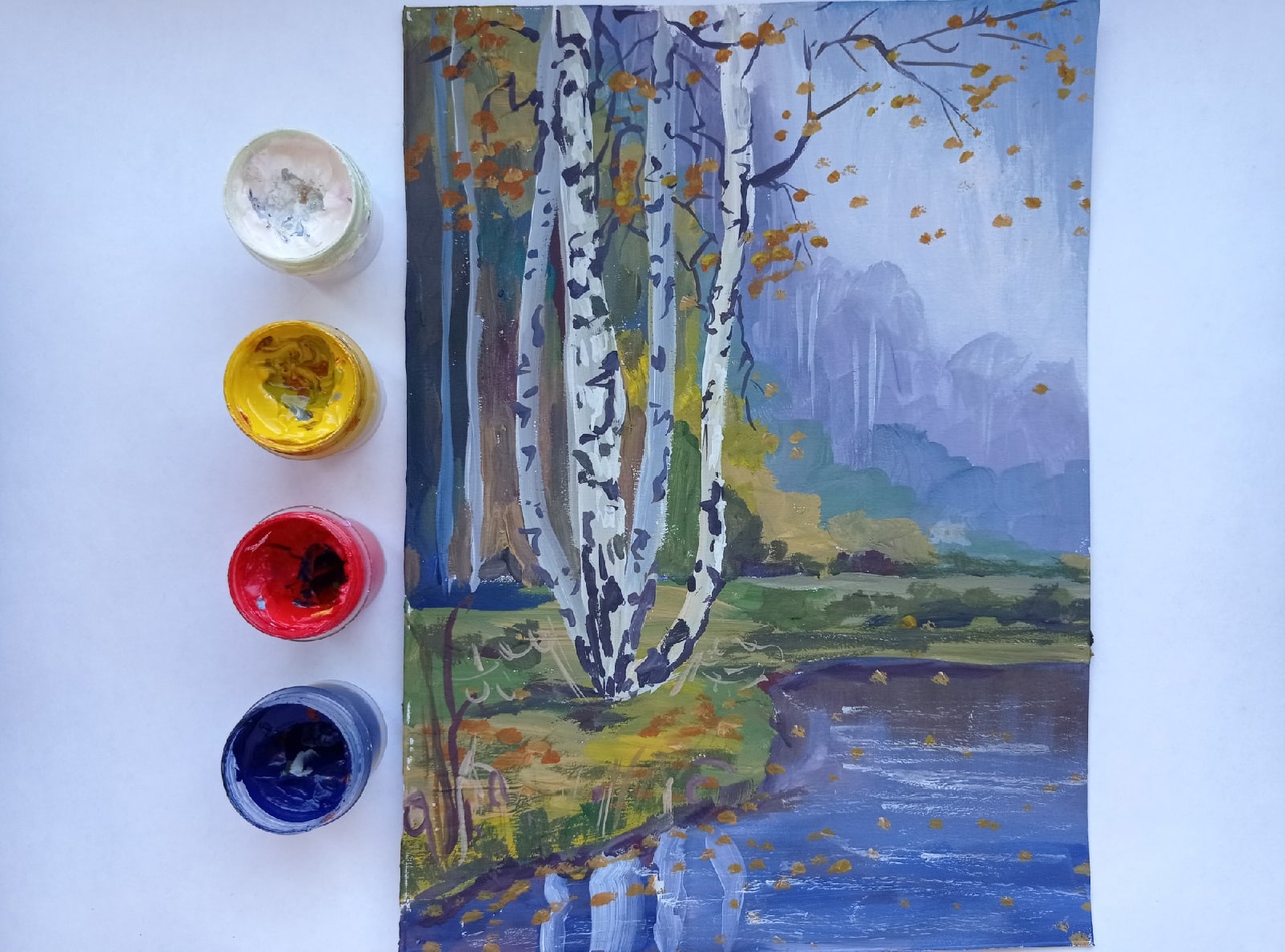 Пейзаж с березами | Как нарисовать гуашью просто