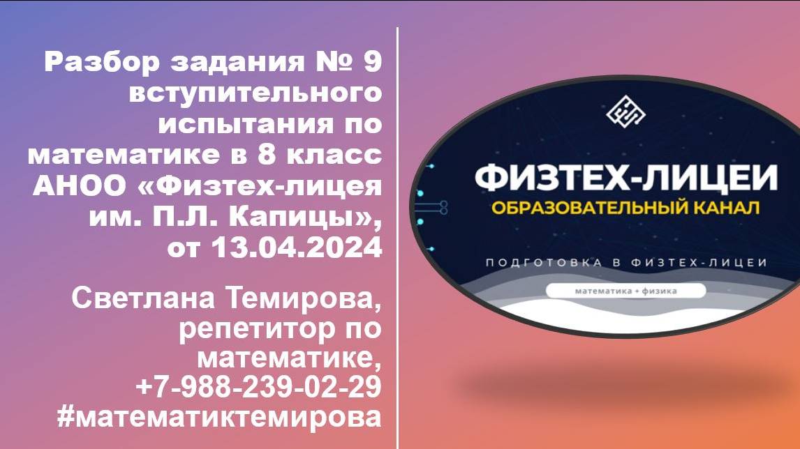 Как поступить в Физтех-лицей? Уметь решать сложные и нестандартные задания. Разбор вступительного варианта в "Физтех-лицей им. П.Л. Капицы", г. Долгопрудный. Решение будет полезным для учеников 7 класса и их родителей. Всем, кто готовится к поступлению в профильные школы, где на экзамене нужно продемонстрировать умение решать задания повышенной сложности. Светлана Темирова, +7-988-239-02-29 (Телеграм, ватсапп) #математиктемирова