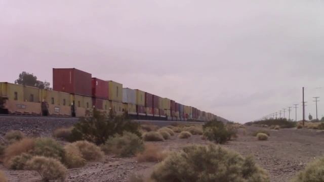 3 сильных тепловоза везут нефтяные цистерны и грузовые вагоны по железке в США