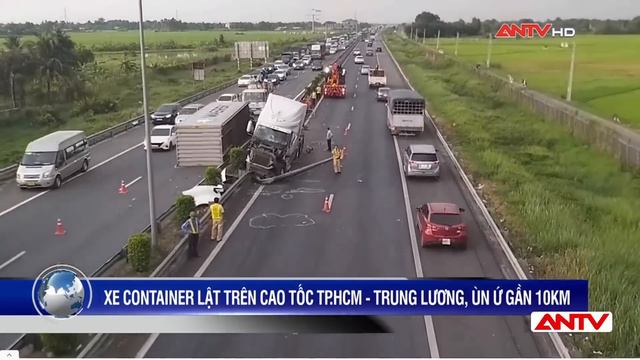 ANTV | Mới đây, một chiếc xe container lưu thông trên cao tốc TP HCM - Trung Lương theo hướng đi miền Tây đi gần đến cầu vượt số 2 thuộc địa bàn xã Nhị Thành, huyện Thủ Thừa, tỉnh Long An đã lao vào dải phân cách giữa làm gãy trụ đèn, trục container bị lật gây ùn ứ gần 10km. Mời quý vị và các bạn xem thêm: Bắt Quả Tang Hộ Kinh Doanh Xả Nước Thải Chưa Qua Xử Lý Ở Bắc Ninh | Tin Tức 24h | ANTV https://youtu.be/zr7c1dSGvMk ★ ĐĂNG KÝ AN NINH TV: http://bit.ly/ANTVSubscribe --------------------------------------------------------------- ANTV – Truyền hình CAND là kênh tin tức thời sự an ninh trật tự chuyên biệt. Tin tức mới nhất được cập nhật liên tục hàng ngày. Nguyên tắc thông tin là Nhân văn - Tin cậy - Kịp thời - Hấp dẫn . Có ý kiến xây dựng hoặc đề nghị, vui lòng để lại comment phía dưới video. ✔ Website chính thức: www.antv.gov.vn ✔ Fanpage chính thức: http://bit.ly/FanpageANTV ✬ Rất mong được mọi người ủng hộ và subscribe kênh, cũng đừng quên bấm like và share cho bạn bè nhé! Xin cảm ơn! Xin chào, chúc mọi người xem vui vẻ!!! #antv #truyenhinhcongannhandan #tainangiaothong