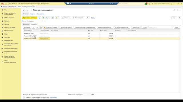 Формирование плана закупок в 1С:ERP 2.5