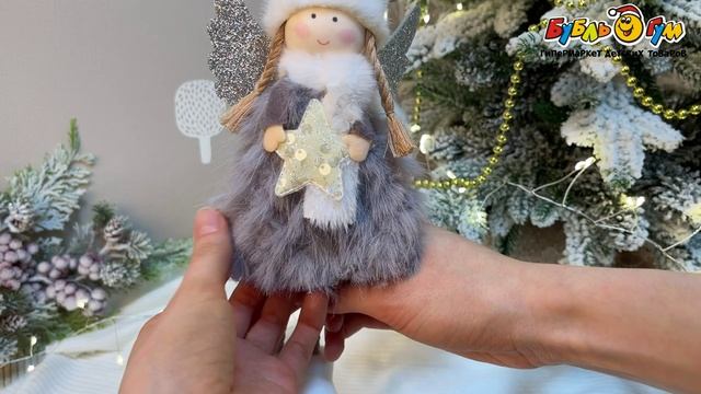 331079 Фигурка новогодняя Ангел в пушистом наряде 25см в ассортименте