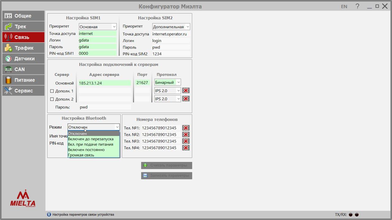 Конфигуратор MIELTA M1 прошивка трекера ГЛОНАСС мониторинг транспорта