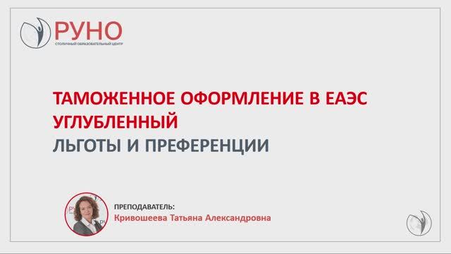 Таможенное оформление в ЕАЭС. Углубленный. Льготы и преференции | РУНО