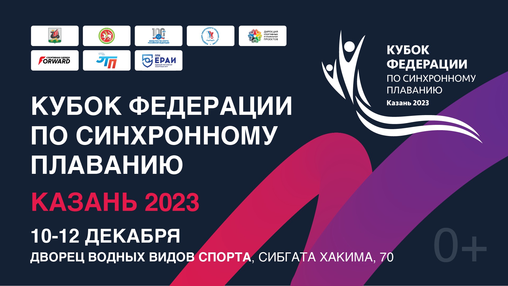 Международные соревнования «Кубок Федерации» INTERNATIONAL PROFESSIONAL SPORT COMPETITION «FEDERATION CUP» Venue: Kazan, Republic of Tatarstan / Место проведения: г. Казань, Республика Татарстан Dates: 9 - 13 December / Сроки: 9 - 13 декабря Программа: Акробатическая группа, Награждение Официальная страница соревнований: https://synchrorussia.ru/kalendar/2023/ms