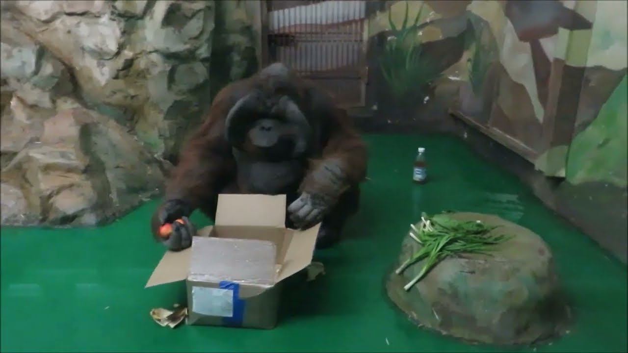 Орангутаны Мишель и Бату завтракают отдельно друг от друга 03.04.2023