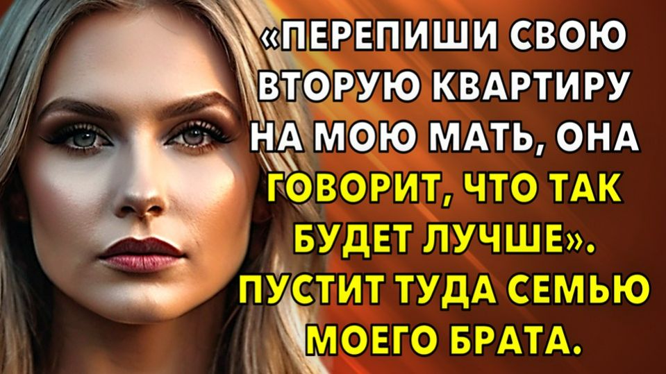 Перепиши свою вторую квартиру на мою мать, она говорит, что так будет лучше. Пустит туда семью моего