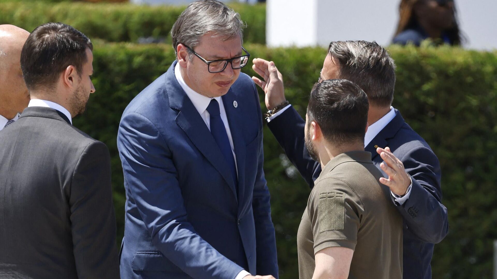 Очень короткая встреча Александра Вучича и Владимира Зеленского в Молдавии