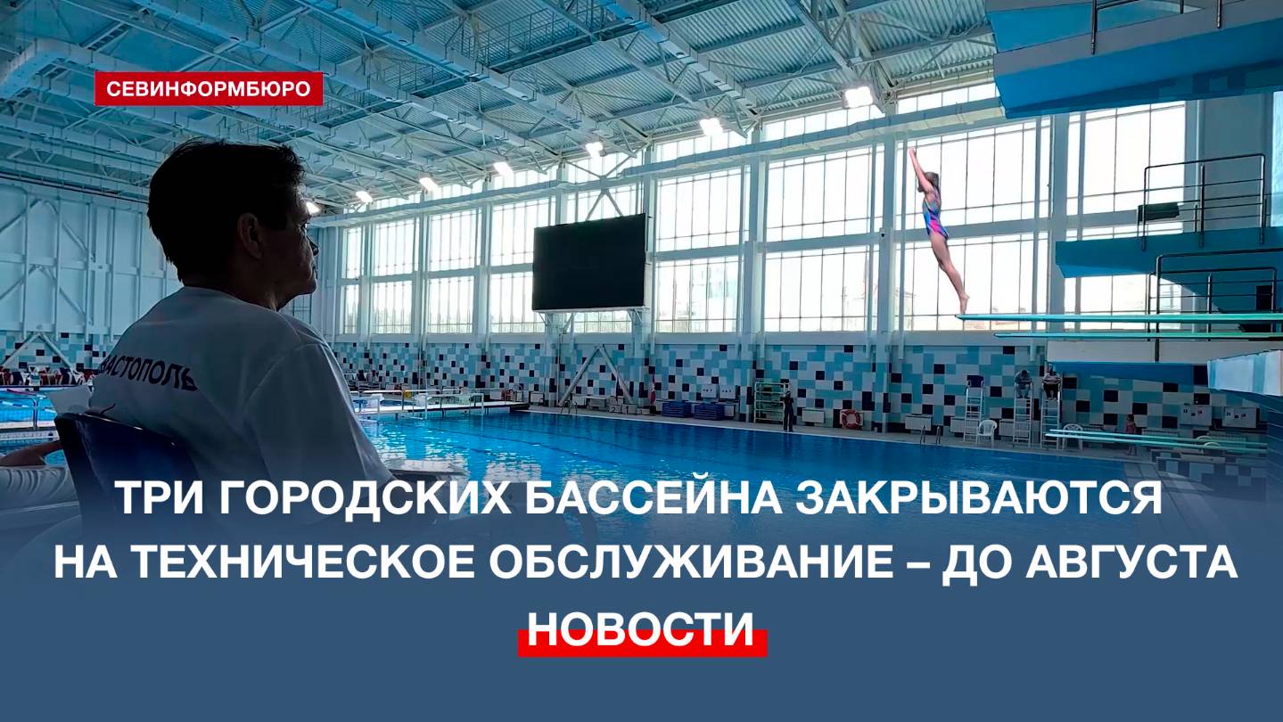 Три городских бассейна закрываются на техническое обслуживание. Бассейны во Дворце водных видов спорта имени Галины Прозуменщиковой, в физкультурно-оздоровительном комплексе в Инкермане и в спортивной школе олимпийского резерва на улице Вакуленчука не будут принимать пловцов до начала августа. Об этом стало известно в ходе аппаратного совещания в Правительстве Севастополя 30 июня. Прекращают работу бассейны – в разное время. Подписывайтесь на наш Телеграм-канал: https://t.me/nts_novosti Смотрите новости Севастополя и Крыма на сайте НТС: http://nts-tv.com В нашей группе "ВКонтакте": https://vk.com/ntssevastopol На странице в "Одноклассниках": https://ok.ru/ntssevastopol