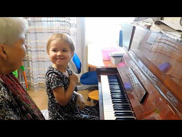 Радослава Лемешкина, 3 года. Игра с аккомпанементом на четырех нотах. Транспонирование.