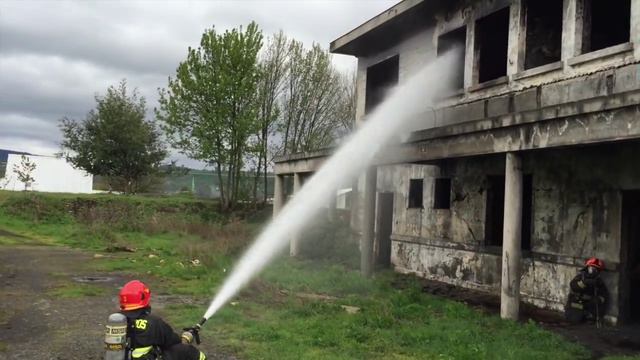 Ejercicio de Blitz Attack de la Segunda Compañía de Bomberos de la ciudad de Curacautín, IX Región. Ataque defensivo a 470GPM, interior ofensivo a 250GPM. Sector Focura