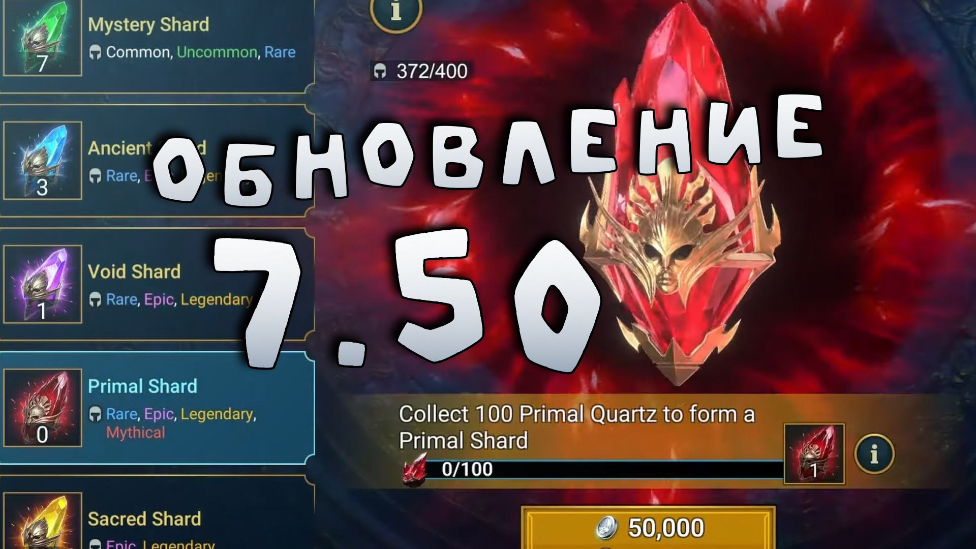 обновление 7.50. Мифические герои и где их можно получить. RAID shadow legends