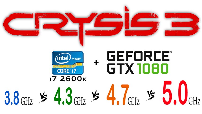 Crysis 3 i7 2600k 3.8 ГГц, 4.3 ГГц, 4.7 ГГц, 5.0 ГГц