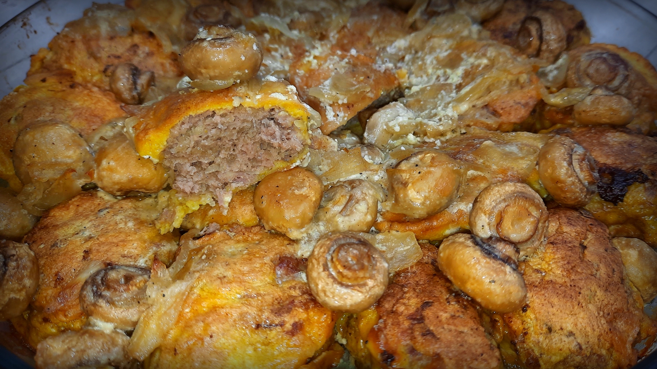 Котлеты из фарша с картофелем, запечённые в сметанно-грибном соусе / Топовые котлеты!