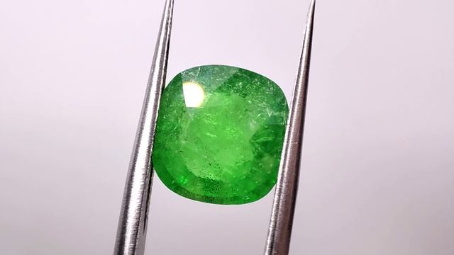 4.75 ct. Гранат Цаворит кушон. Место добычи камня - Танзания. 100% природный камень, без облагораживания. Чистота: SI1(GIA):Г3 (Xtl; Gth; Ftr) Размер: 10,0 х 10,0 х 5,5 мм. №1098