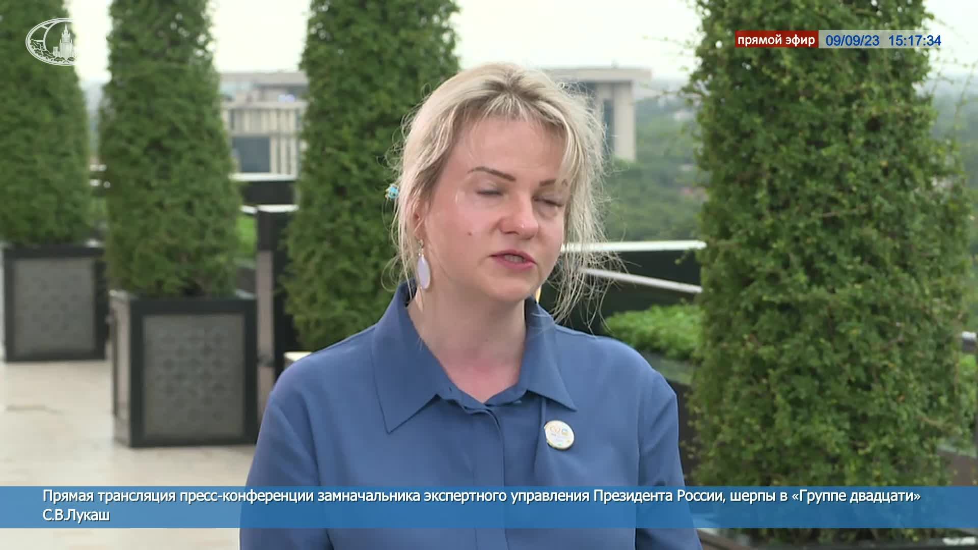 Выступление и ответы на вопросы СМИ замначальника экспертного управления Президента России, шерпы в «Группе двадцати» С.В.Лукаш