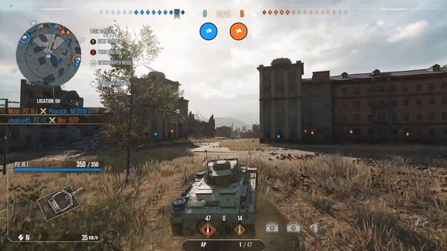 Quick match with the Pz.Kpfw. III Ausf. J, a tier 4 medium German tank. (With my English flag)😀 Despite being a medium tank, it can be considered one of the best scout-gameplay tanks in the German tree, with excellent acceleration and turning giving a mobility rivaling the Luchs. Comparing the two, Panzer III has less maneuverability than the Luchs, potentially more firepower (but less standard penetration), thicker but flat armor. There are two guns: the 5 cm KwK 39 L/60 long-cannon with higher penetration and flanking is the best choice for newer players, but there is also an howitzer-like 7.5 cm KwK 37 L/24; with HEAT being a near-necessity and requiring some extra skills and equipment. Both guns have their place on a fully upgraded Pz.Kpfw. III, it depends on player preference and playstyle. Competing with other tanks, its agility makes it very effective against other light and medium tanks, but its guns are almost useless against heavy tanks. Be sure to avoid engaging multiple opponents - flank, use cover, and only come out to shoot when you need to. Use this tank to learn the camo, spotting, and player-distraction techniques of the Leopard line.