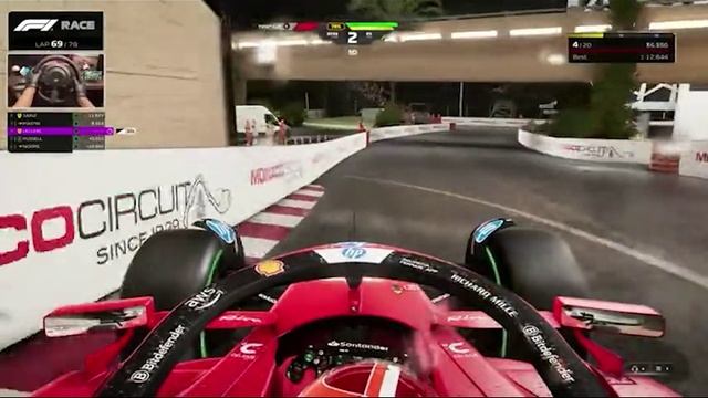 Когда каждый миллиметр имеет значение! Полное погружение в гонку! F1 24, гонки, Монте-Карло, Ferrari SF24, руль, симулятор, ночь #F124 #ГонкиНаГрани #МонтеКарлоF1