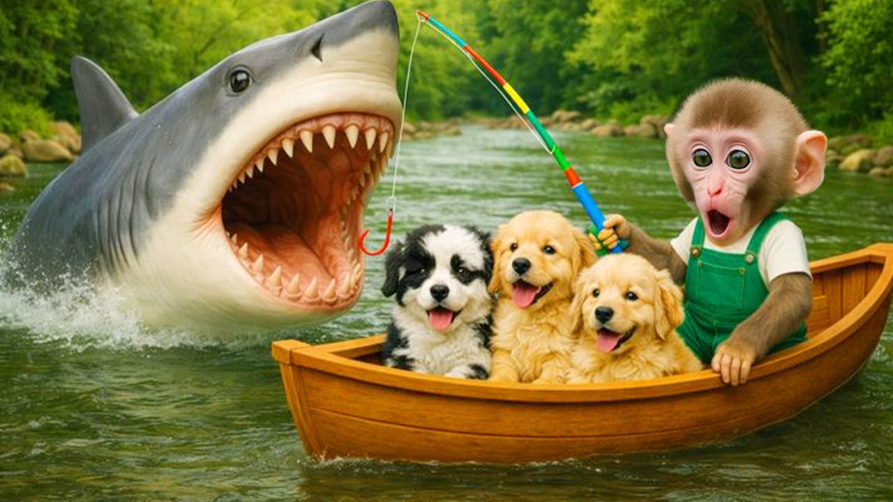 Мультики для детей, обезьянки спасают щенят, видео про обезьянку, мультики