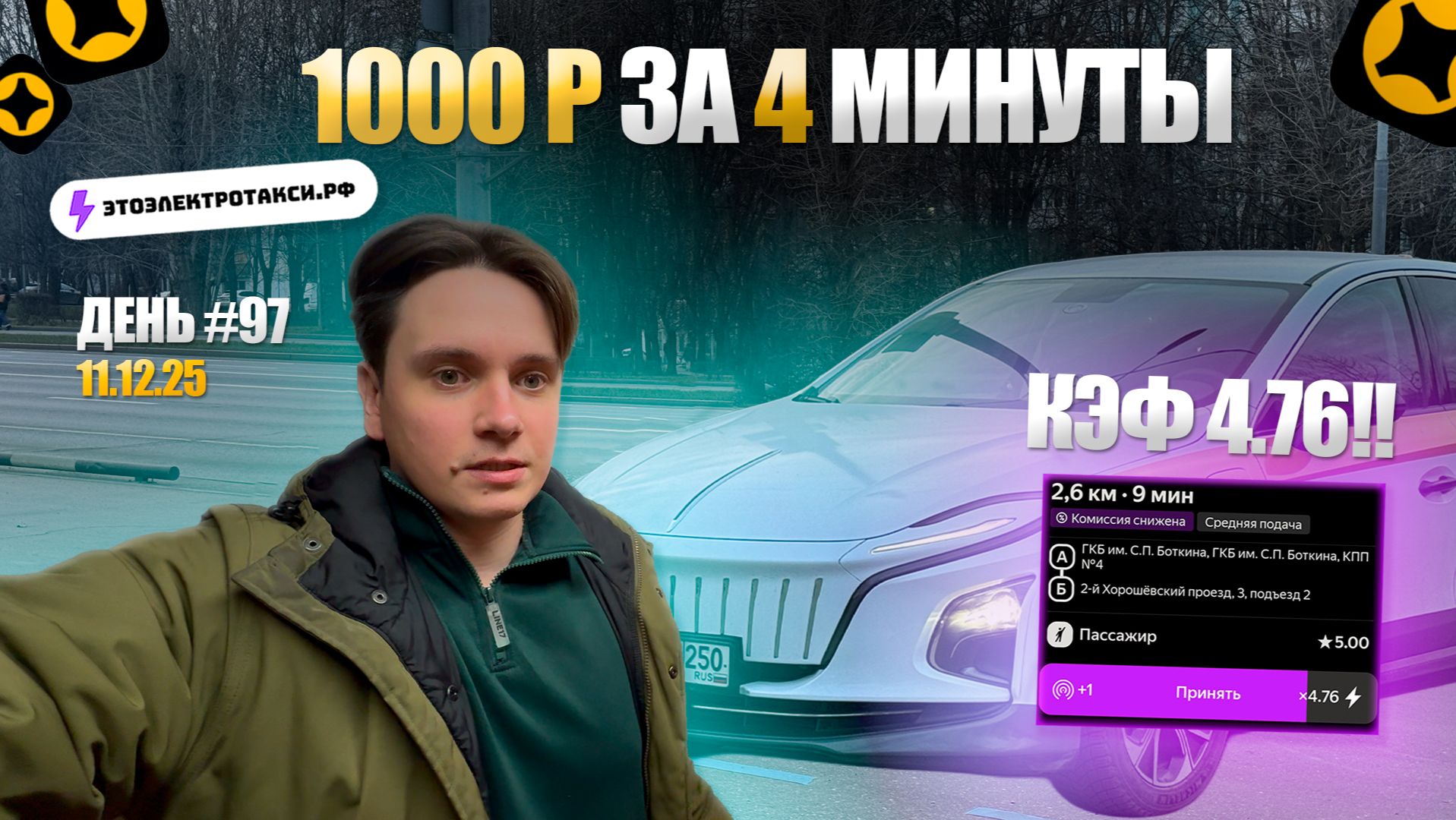 Самый дорогой заказ! Смена в такси на электромобиле в Москве 11.12.25
