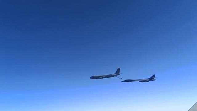 Истребители Су-30 ВМФ РФ сопроводили стратегический бомбардировщик B-1B Lancer и заправщик KC-135 над нейтральными водами Чёрного моря.