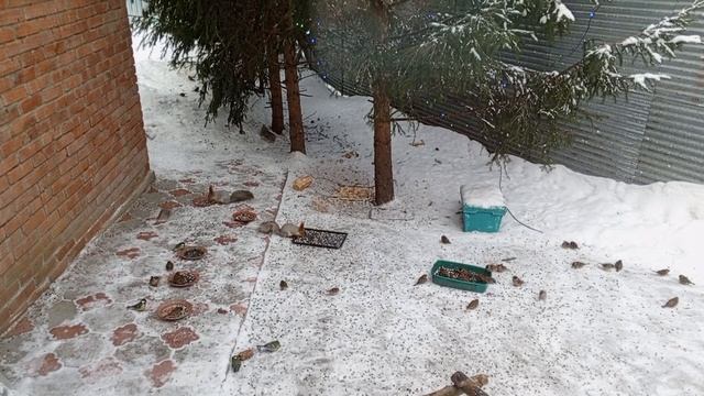 Утреннее застолье у белок.